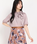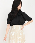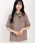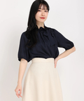 襟元のギャザーフリル&リボンがお顔周りを華やか魅せてくれるブラウス。
