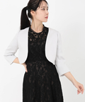 上品な光沢感がパーティースタイルにぴったりなノーカラージャケット。