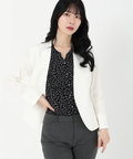 すっきりとしたネックラインが上品な印象で、オフィススタイルからパーティーシーンまで幅広くお羽織りいただけます。
