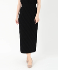 上品な表情のニット素材に、動きのあるフリンジディテールがアクセントのニットタイトスカート。