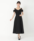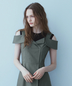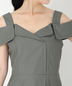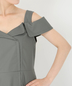 肩まわりはオフショルダー風のディテールで抜け感を演出。