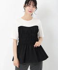 【B品】レイヤード風シャーリングトップス※添付資料必ずご一読ください
