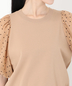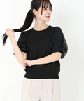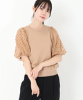 トレンドのフロッキードットが施されたチュール素材のパフスリーブが特徴的なポリエステルニット。
