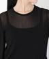 肌に寄り添うようにフィットする、柔らかなストレッチチュール素材のトップス。