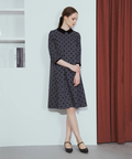 上品な印象の生地に繊細なフロッキードットをあしらった華やかなAラインワンピース。