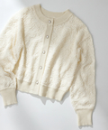 ローズ柄のモールレースが華やかに映える、上品フェミニンなニットカーディガン。