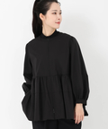 程よい光沢感とハリ感が魅力のタフタ素材を使用した、ふんわり軽い着心地のブラウスブルゾン。
