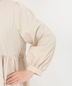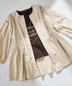 ウエストにギャザーを寄せたペプラムシルエットが、女性らしさを引き立てながら体型カバーも◎