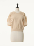 チュール×レースの異素材スリーブが華やかな、バルーンスリーブニット。