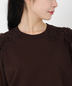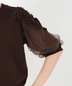 ほんのり透け感のあるチュールと繊細なレースを重ねた袖が、フェミニンな印象をプラス。
