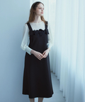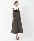 なめらかな肌触りとやわらかさを兼ね備えたソルフェクロス素材を使用した、上品なジャンパースカート。