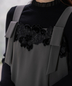 フロントにあしらったベロアレースのトリミングが、繊細でクラシカルな雰囲気を引き立てます。