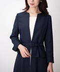 ワンピースのネックから胸元を優美にカバーするキーネックラインの美シルエットジャケット。
