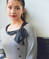 サイドネックのリボンがクラシカルでレディライクな印象に◎