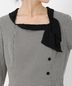 配色のジョーゼット素材を用いた立体的な襟元は、