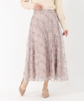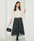ダイヤ柄とチェック柄を交差して刺繍したオリジナルのフレアスカート。
