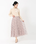 ウエストラインをすっきりと見せるシルエットで、甘すぎず大人の可愛らしさを演出。