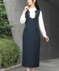 美しいシルエットを叶えるフラップポケットがポイントのジャンパースカート。