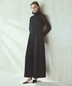 首元を包むハイネックデザインが上品な印象を与えつつ、