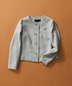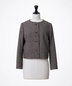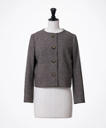 上品なホームスパンツイードに、繊細なラメ糸を織り交ぜた華やかな表情が魅力のコンパクトジャケット。