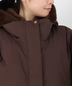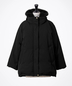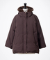 光沢感を抑えたマットツイル素材に、2way仕様のファーフードがついた中綿アウター。