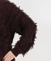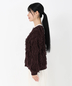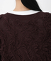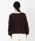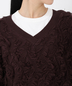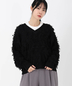 ランダムにあしらわれたフリンジが目を惹く、ジオメトリックな表情のVネックニット。