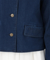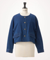 ノーカラーですっきりとしたシルエットが、カジュアルになりすぎずきれいめスタイルにも好相性。