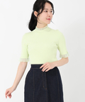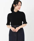 シアーフリルネック5分袖ニット