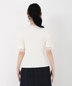 首元のシアーなフリルディテールが視線を惹きつける、人気ニットの5分袖verが登場。