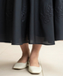 きれいめなパンプスでレディに、フラットシューズで抜け感を出して。