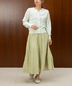 「サラフィール」シリーズのカーディガンと合わせれば、上品で統一感のあるフェミニンスタイルが完成します。