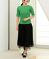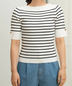 繊細なリブ編みが縦のラインを強調し、上半身をコンパクトに、そして華奢に見せてくれます。
