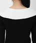 最大の魅力は、鎖骨を美しく見せるように計算された抜け襟風のネックライン。