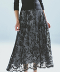 上品な透け感を持つレースに、ストライプを合わせた落ち感のあるフレアースカート。