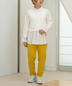 デニムやテーパードパンツと合わせても、シャツの裾が気になる腰周りを自然にカバーしてくれるため、