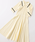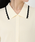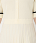 ネックラインや前立て、袖口にあしらわれた「スカラップ(波打ち)」デザインが、程よい甘さを添え、