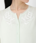 胸元にあしらわれた「ミュゲ」の刺繍は、立体感を持たせつつも、