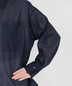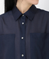 襟元やカフスの端正なディテールが、シアー素材の軽快さに「きちんと感」をプラスし、