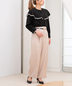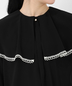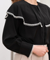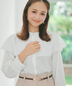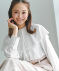 襟まわりとカフス先には華奢なレースをあしらい、袖のふんわりとしたボリューム感長めのカフスもポイント◎