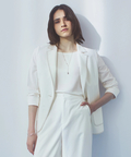異素材を掛け合わせることで、布帛(ふはく)のきちんと感とカットソーの快適さを両立しています。