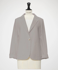 テーラードジャケットの端正な顔立ちをキープしつつ、ジャージ素材の快適な着心地を追求した一着。