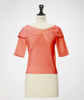 最大の魅力は、首元にあしらわれたアシンメトリーなリボン風デザイン。