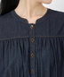 デザイン面では、顔まわりをすっきりと見せるネックデザインと、フロントに並ぶボタンが程よいアクセントに 。