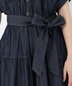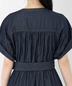 肩先をカバーするフレンチスリーブの袖口にはタブがあしらわれ、さりげない立体感をプラスしています 。