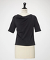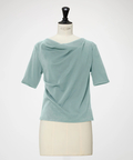 最大のポイントは、首元に優美なニュアンスを添えるドレープネックデザイン。