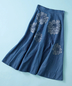ライトデニム刺繍フレアスカート