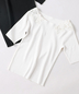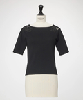 さりげない肌見せと繊細なディテールが洗練されたムードを醸し出す、肩シアーレースリブニット。