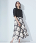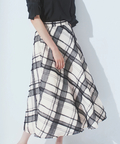 存在感のある太めの刺しゅうで描き出した、モダンなチェック柄のフレアースカートです。