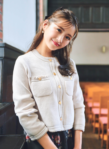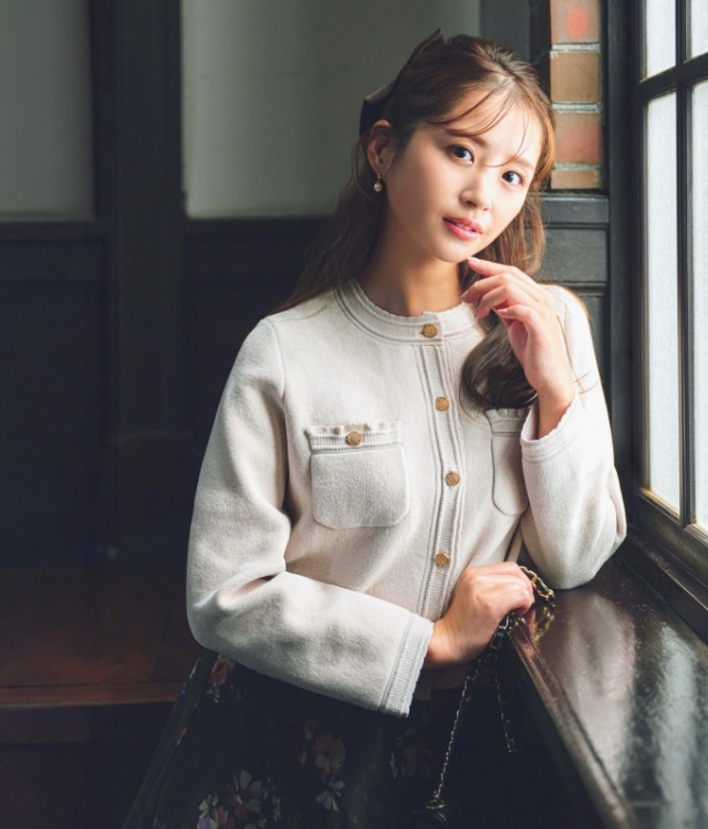 クラシカルな千鳥柄、優しげなニットジャケット--