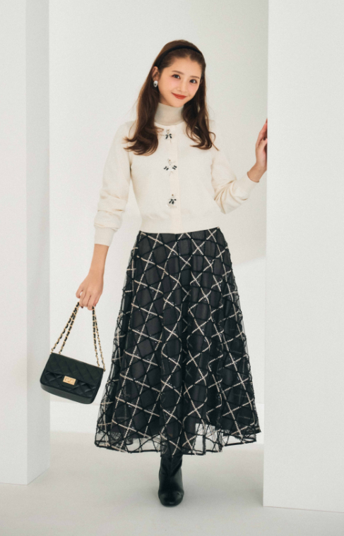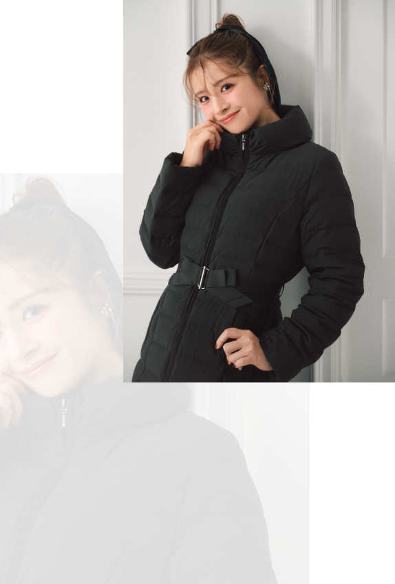 ストロベリーフィールズが得意とするフィット&フレアの美シルエットが魅力。ストレッチ素材を使用し、軽やかでノンストレスな着心地なのに、ダウン特有の着膨れ感とは無縁。上品なグログランリボンベルトでウエストをきゅっと引き締めれば、360度どこから見ても絵になるシルエットが手に入ります。モデル着用のシックなブラックのほか、優しげな印象が引き立つ、上品なベージュも登場。